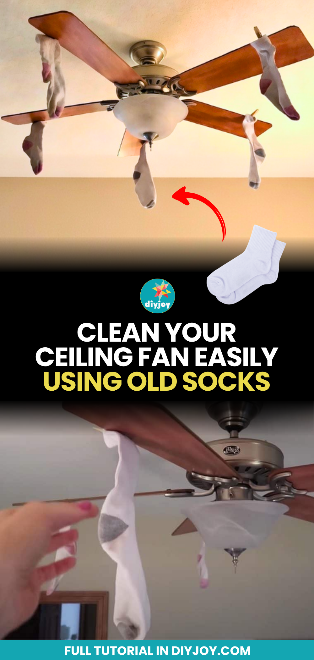 So there you have it. One simple method for cleaning your ceiling fan is described above.Or any of your regular fans. The good part about this hack is that you don’t have to do a lot to make sure the fan blades get cleaned. You just slide the sock on the blades and everything gets done.
