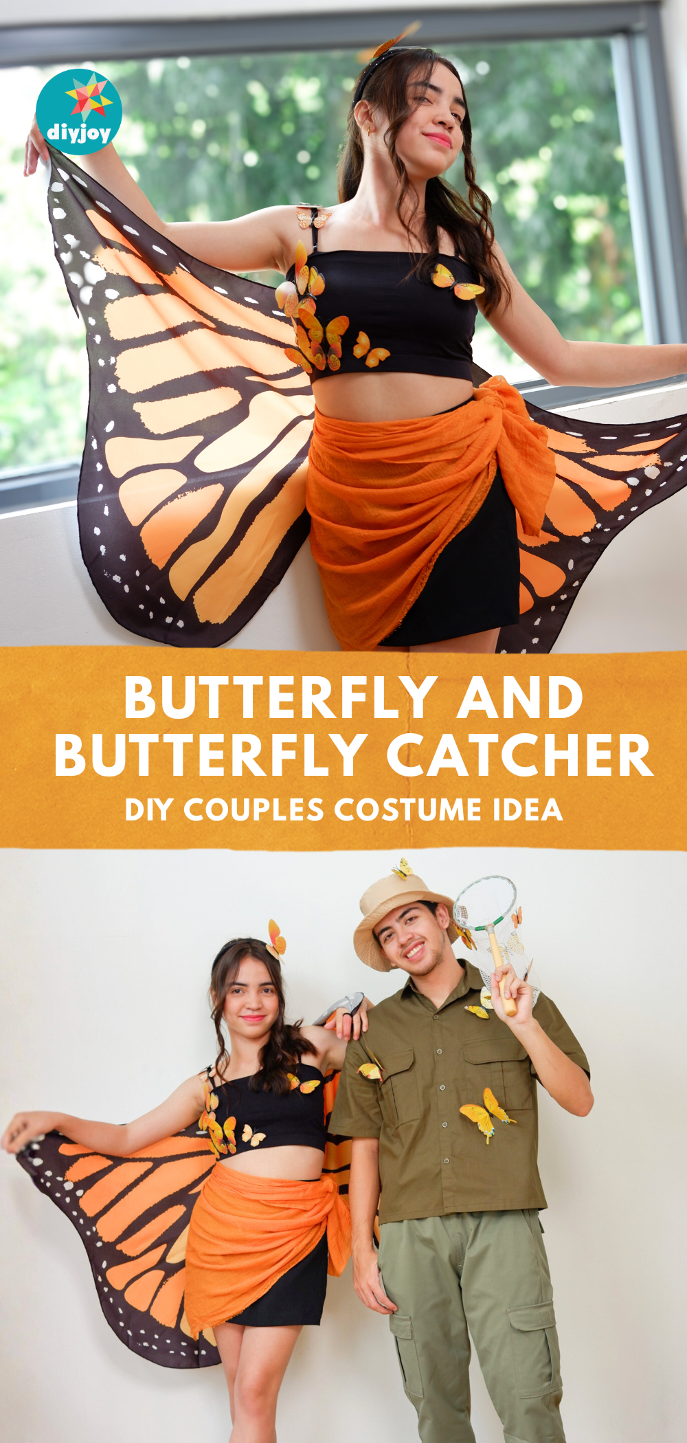 If you’re here, you’re probably looking for an easy and unique costume idea for couples. Lucky you, we have some great Halloween costume ideas! They’re budget-friendly, easy to make, and do not require sewing. One of the couples costume projects we made this year is this butterfly and butterfly catcher look. It is perfect not only for couples, but also for friends and families. Learn how to DIY this costume at home with this step-by-step tutorial.