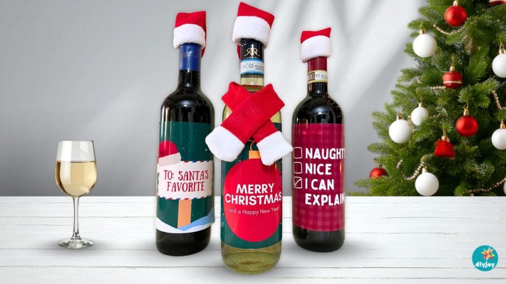 I think I’ve found the perfect presents for this holiday season! This Santa wine project is the best DIY gift for wine lovers. It’s way better than a regular bottle since the labels are customized and the bottles are all dressed up with hats and scarves, making them look so festive. If you’re still looking for gifts for friends, coworkers, or family, this custom wine idea is exactly what you need!