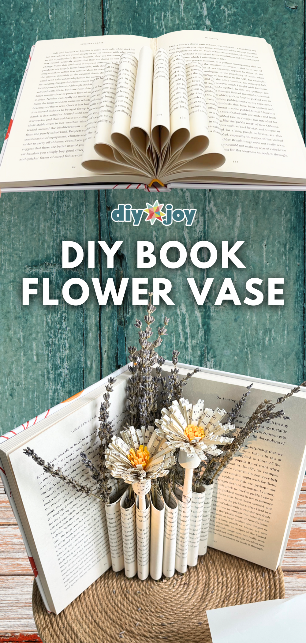Have old books you no longer use and looking for upcycled crafts to make with them? This DIY book flower vase is the perfect project for you. It’s super easy to make and done with a few minutes. No need for special tools!