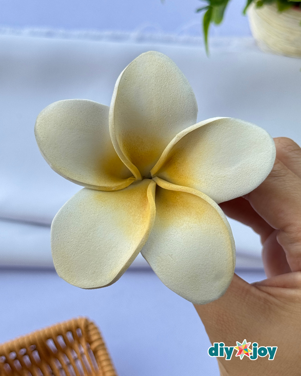 I have always loved the look of frangipani flowers. Their soft, curved petals and simple shape make them stand out without needing too many details. Instead of using real flowers that dry out quickly, I decided to recreate this design using craft foam. The result is a lightweight, long-lasting frangipani flower that you can use for so many different projects.
