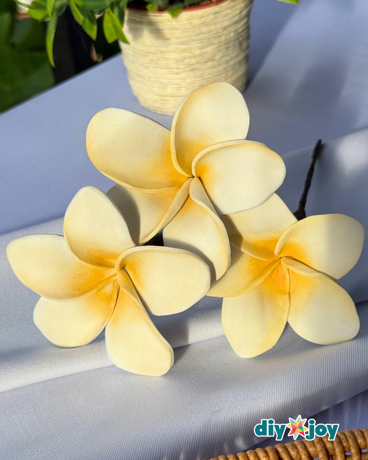 This DIY frangipani flower made from a foam sheet is beginner-friendly and does not require expensive tools. Once you learn how to control the heat and shape the petals, you can easily create multiple flowers in different sizes and color combinations. They are perfect for hair accessories, party decorations, gift embellishments, or tropical-themed crafts.