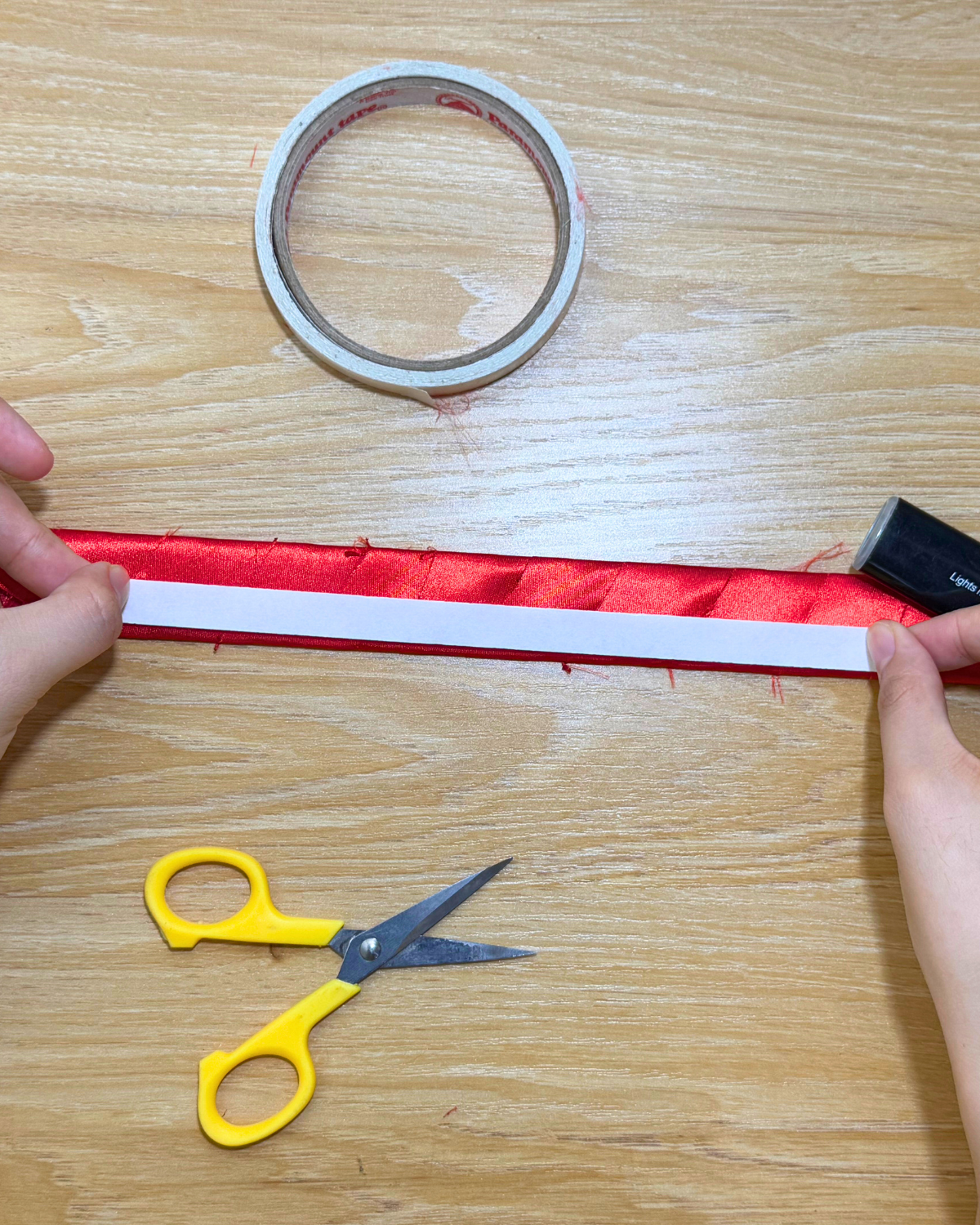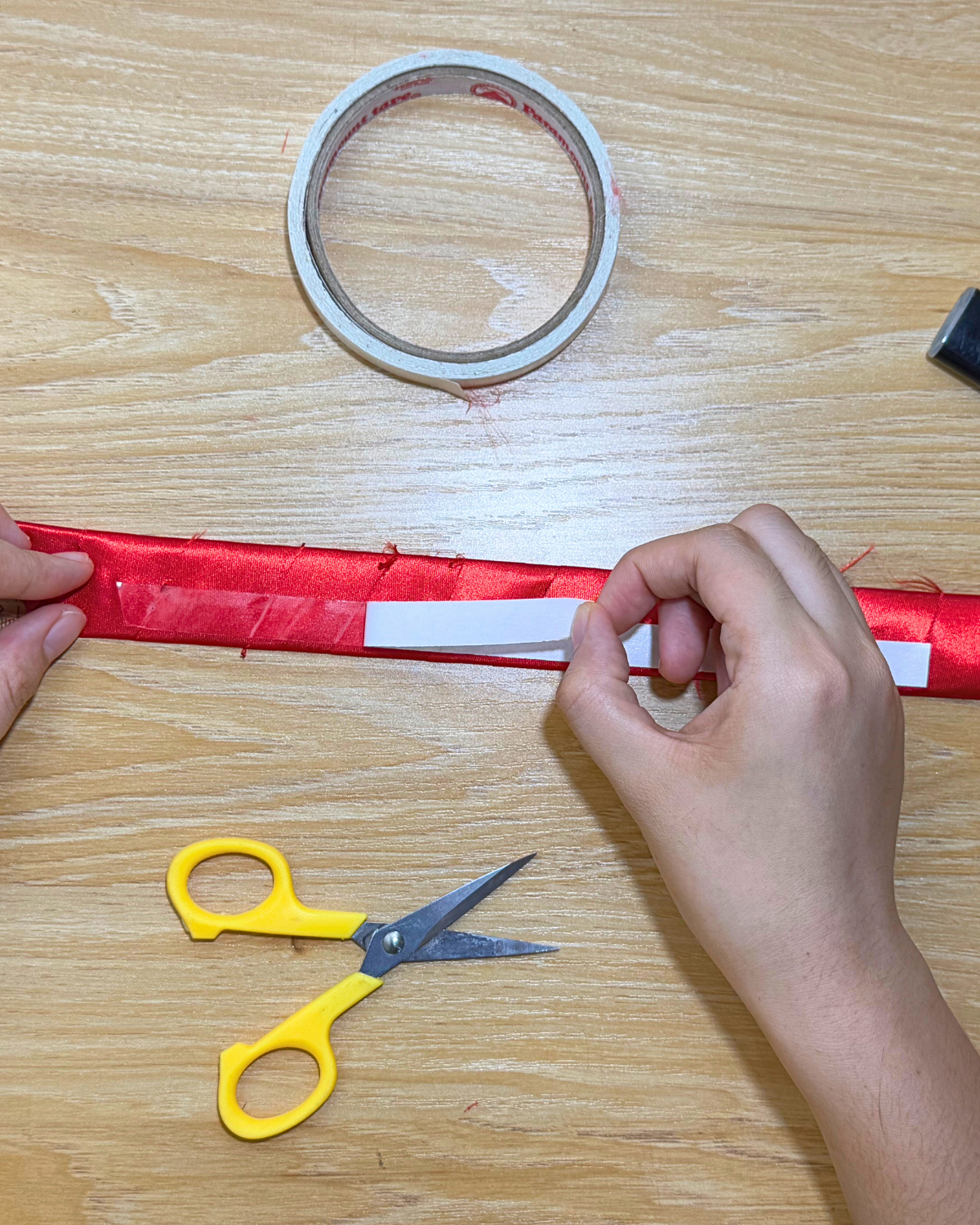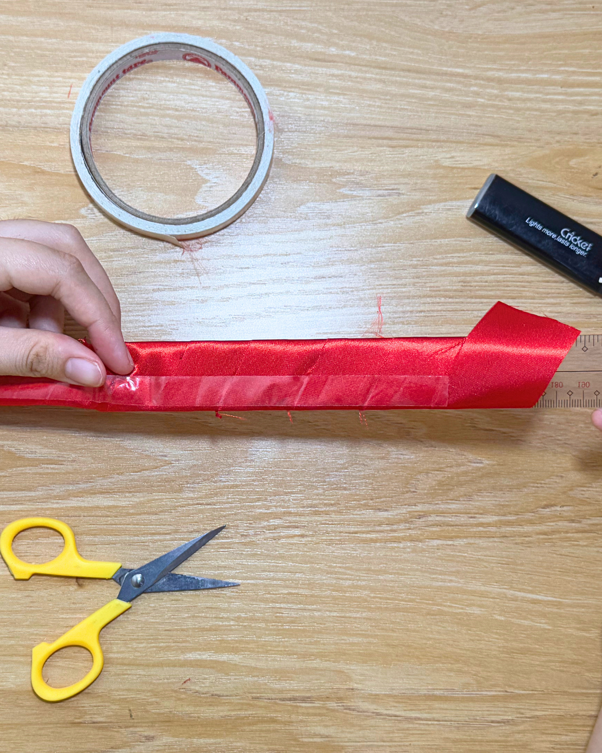 Once you’ve wrapped the entire ruler, cut the excess, and place a piece of double-sided tape along the bottom from one end to the other.