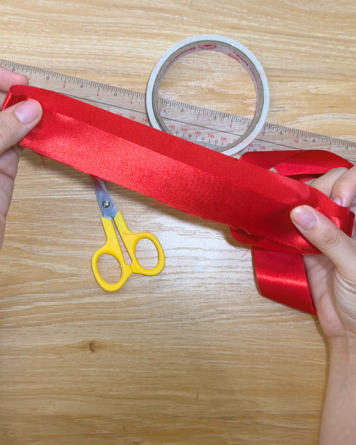 Cut a piece of ribbon long enough to cover the entire ruler.