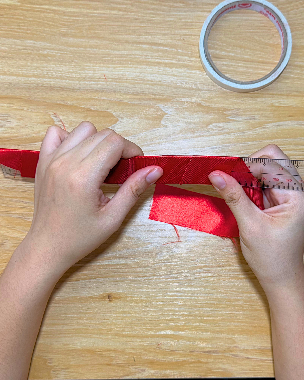 Next, carefully remove the ruler from the ribbon, making sure not to ruin the shape.