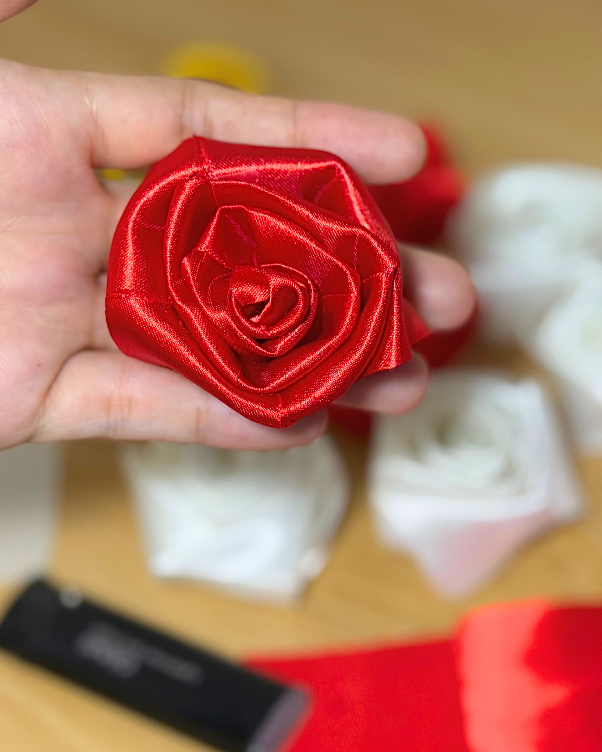I had so much fun making this DIY ribbon rose and it’s one of my favorite crafts! It’s also very pretty in person and it looks realistic, too. You can make this in other colors as well, such as, light pink, yellow, or even light blue! Let your imagination decide the limit of your creativity and you’ll be surprised by what incredible masterpiece you can make.