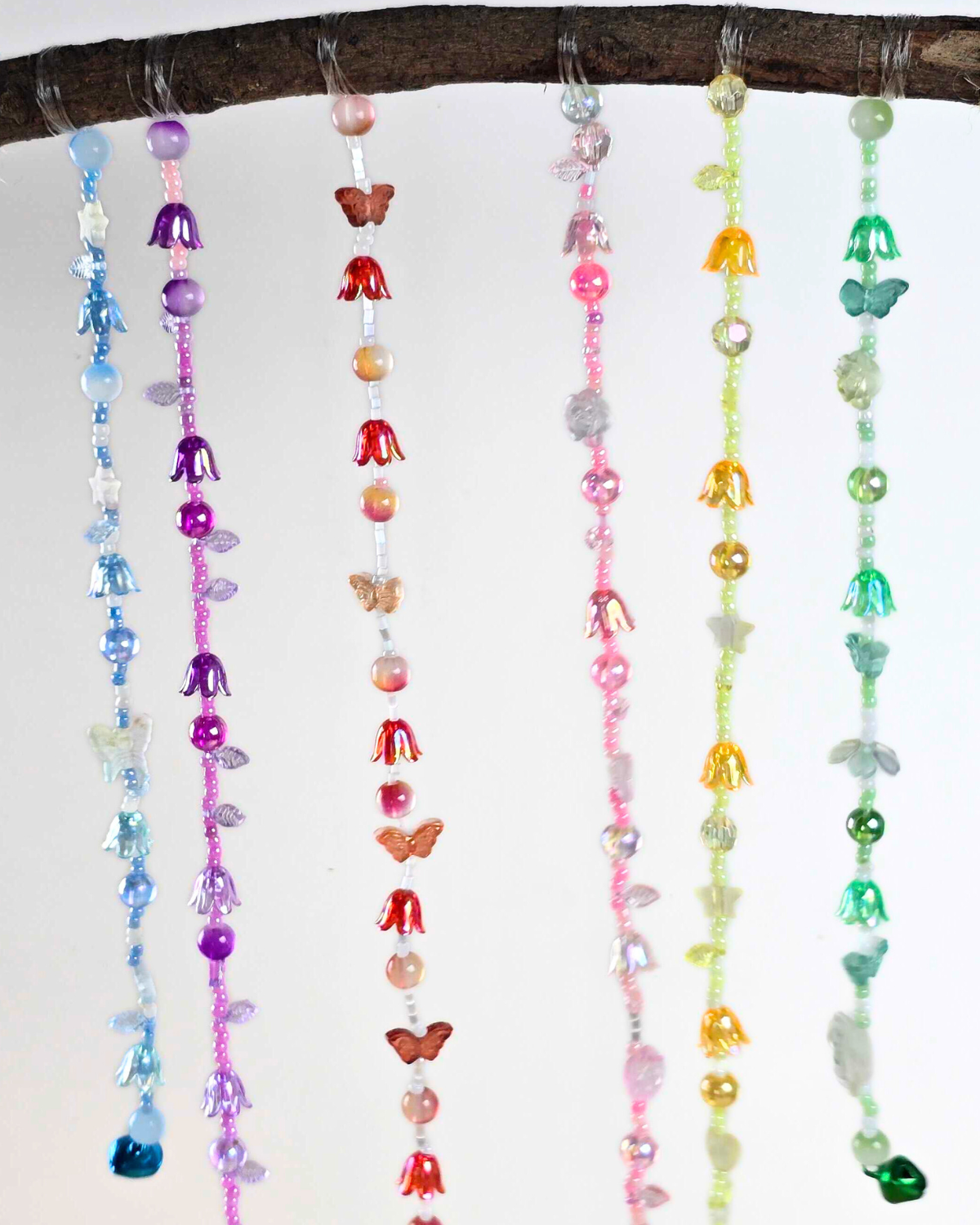 Create more strands of beads and charms, changing their colors to give each strand a unique look.Step 4: Tying it Around the Tree Branch