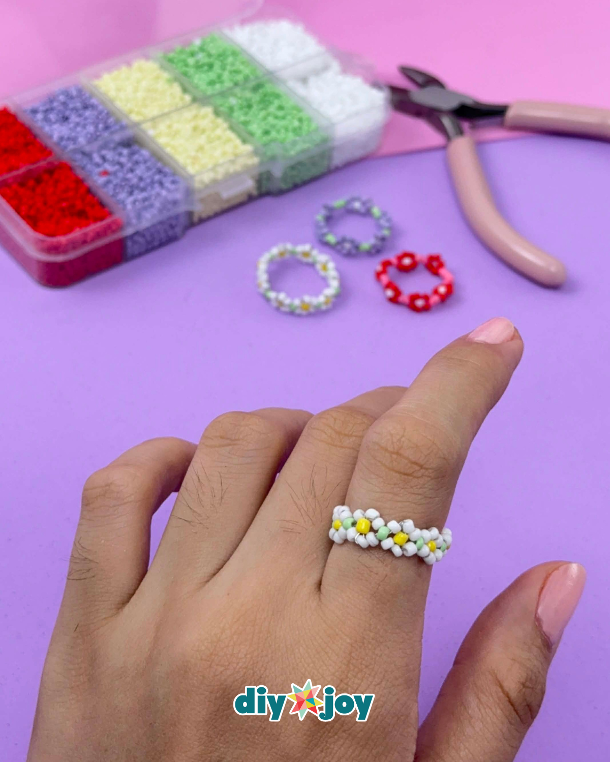 Working with beads is especially fun because of how versatile they are. They come in a wide variety of colors, shapes, and sizes, giving you endless creative possibilities. You can experiment with different styles, patterns, and textures, and shape them into almost anything you imagine. In this project, you’ll learn how to make a bead ring featuring a sweet daisy design that’s playful, eye-catching, and perfect for everyday wear.