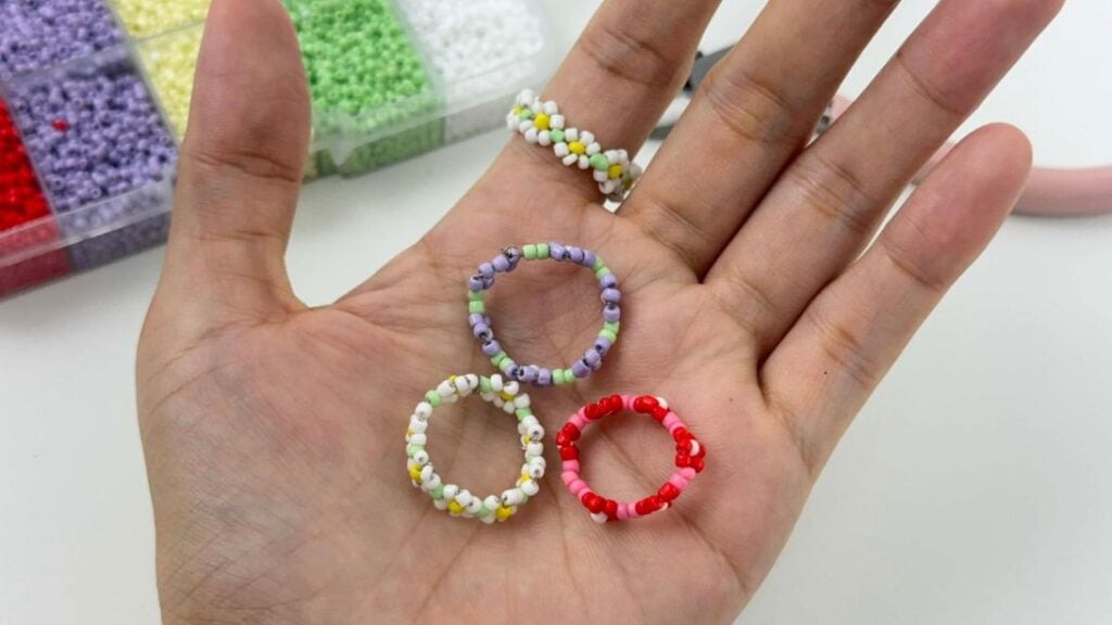 This DIY bead ring also makes a wonderful handmade gift. Since it’s fully customizable, you can choose colors that match the recipient’s style, making it a thoughtful and personalized present. It’s also a fun activity to do with friends or family. If you’re making these rings with kids, be sure to swap the wire for fishing line for safety, or supervise closely while crafting.
