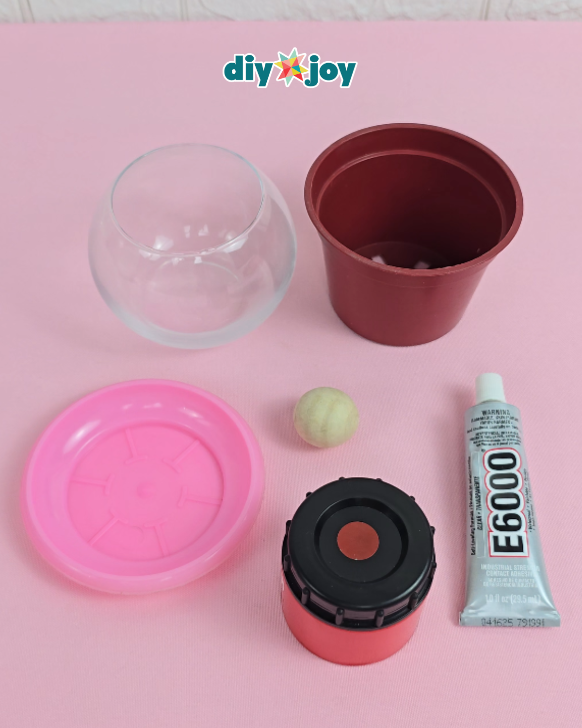 Apply E6000 glue to the bottom of the bowl and the top of the flower pot, then let it sit for a few minutes. Add hot glue to the areas without E6000 and carefully press the two pieces together, holding them firmly in place. Allow the glue to set completely before moving on to the next step.Step 4: Decorate and Fill the Candy Jar