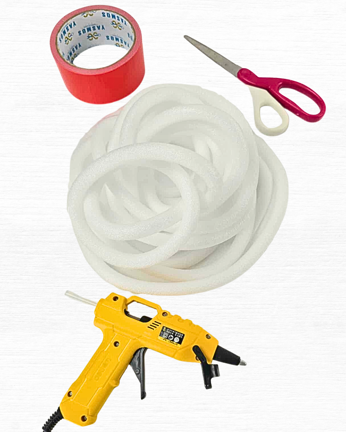 Apply hot glue to a strip, then place it diagonally on the tip of the foam stick. Continue wrapping the strip around the stick until the entire length is covered.Step 3: Form and Secure the Foam Base