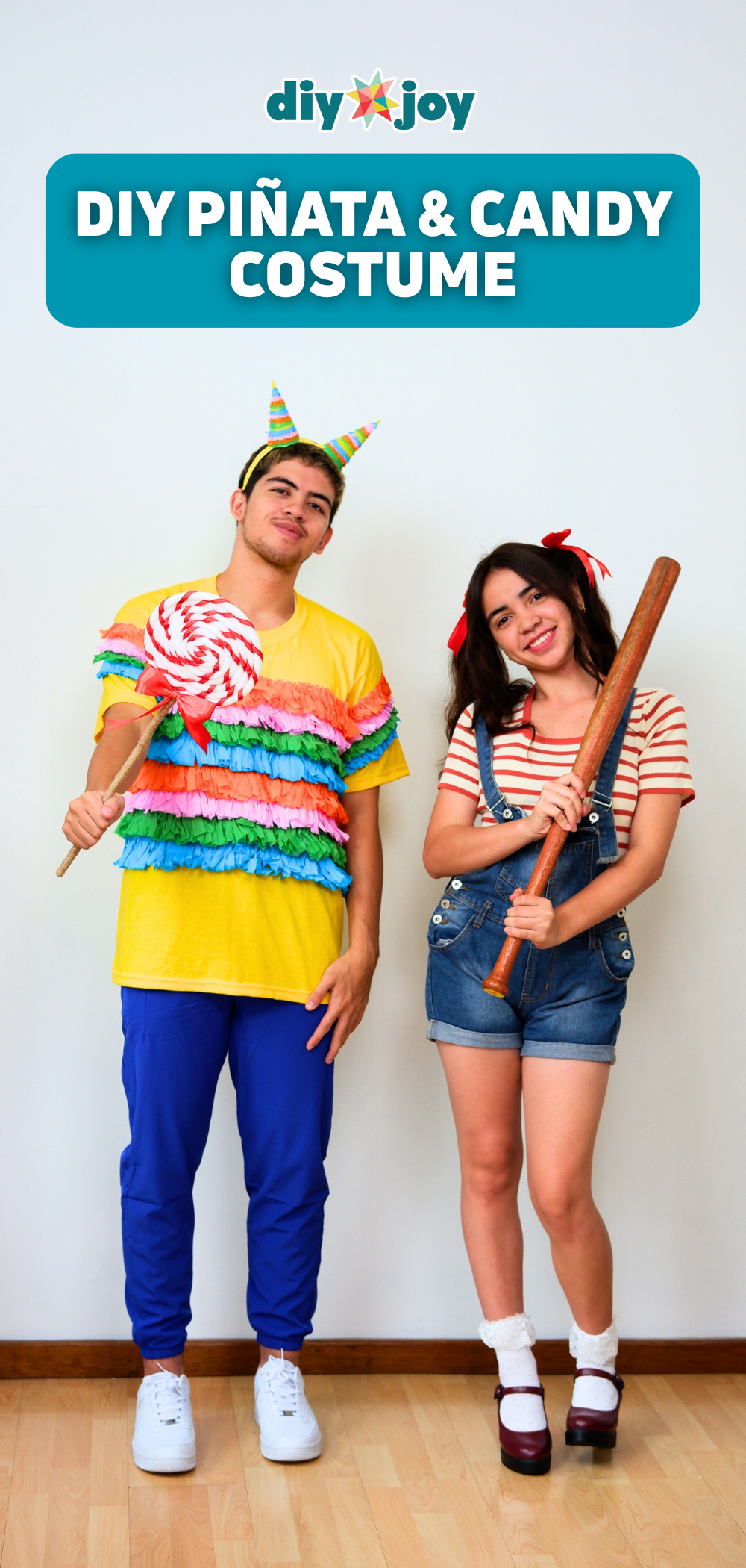 This DIY piñata and candy costume is the perfect last-minute Halloween idea that’s both fun and affordable to recreate. The materials you’ll need are simple and easy to find, and the finished look is guaranteed to get everyone’s attention.