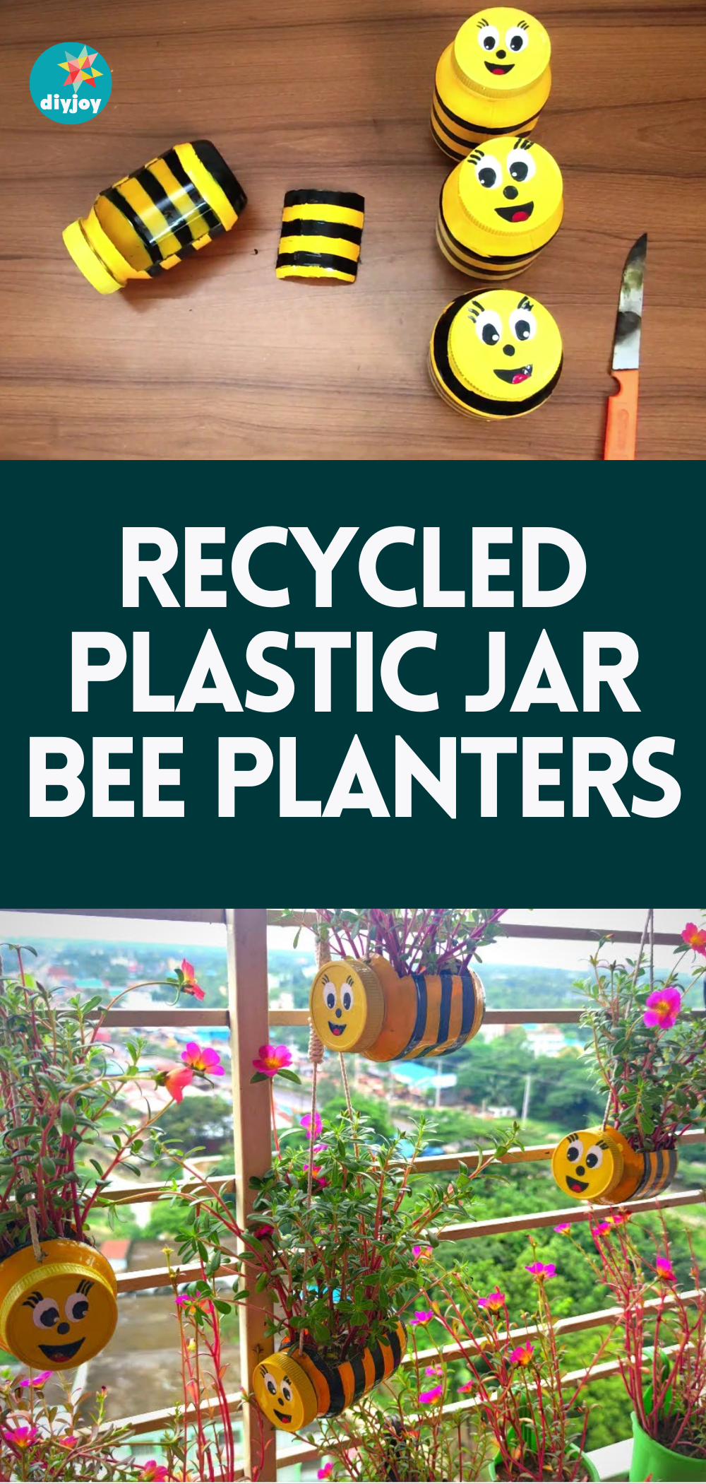If you want to make a pretty planter but don’t want to spend too much money on expensive store-bought ones, then just try making them on your own instead, and recycle materials that you already have on hand, such as some old plastic jars! So, the next time you consider throwing out those old jars, think twice and collect them instead so that you can use them for future DIY projects such as this one by D Crafter on YouTube.