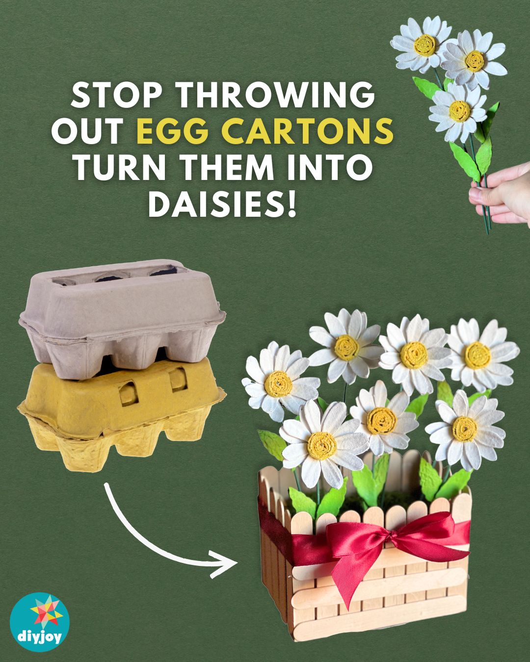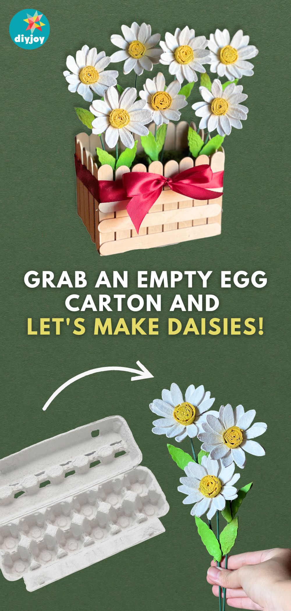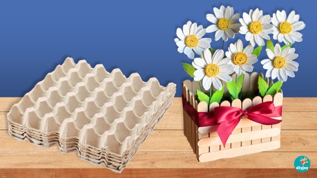 Learn how to make daisy flowers from an egg carton tray with this step-by-step tutorial.