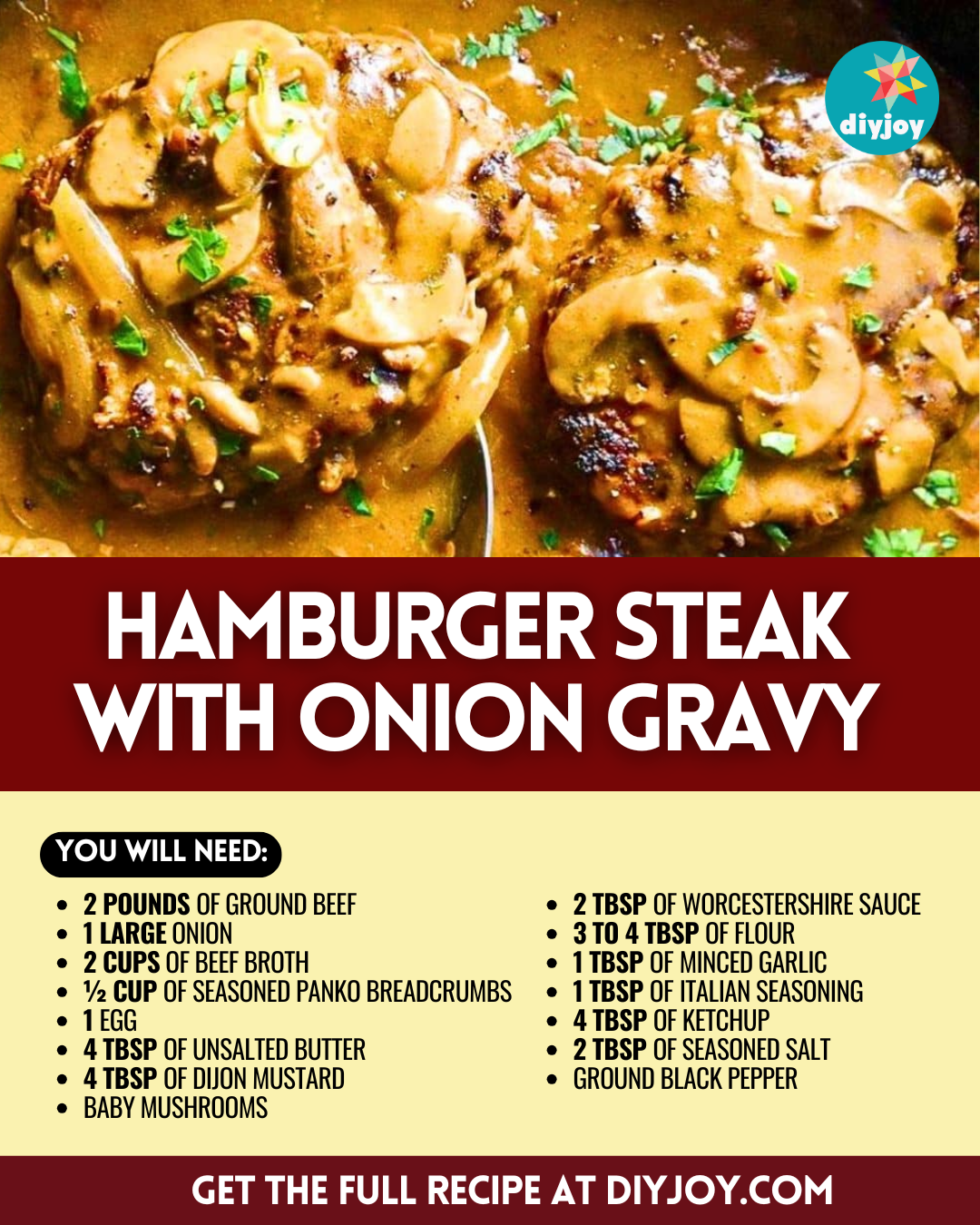 Slowly pour in the broth, then stir them consistently scraping the bottom of the pan to deglaze it, and add the ketchup, Dijon mustard, Worcestershire sauce, seasoned salt, and ground black pepper. Give them a good mix to combine, then put the cooked patties back into the pan, and bring it to a simmer. Cover the pan, then let it continue to simmer for about 30 minutes, and turn off the heat. Serve and enjoy!