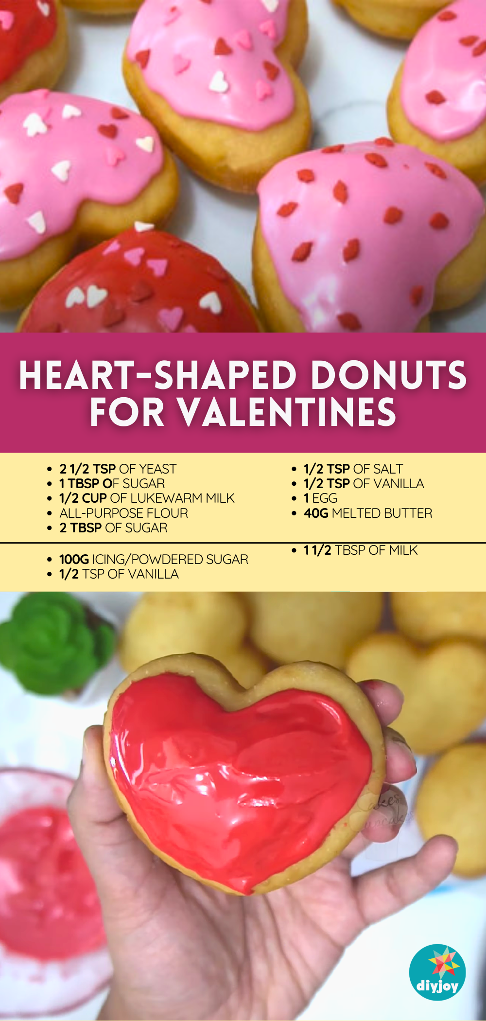 Valentines‘ Day is fast approaching. Maria P R on YouTube shares with us these gorgeous and yummy doughnuts that will fit the loving occasion. These are super easy to make, especially if it’s your first time making them. Give your loved ones some of your delicious baked goods!