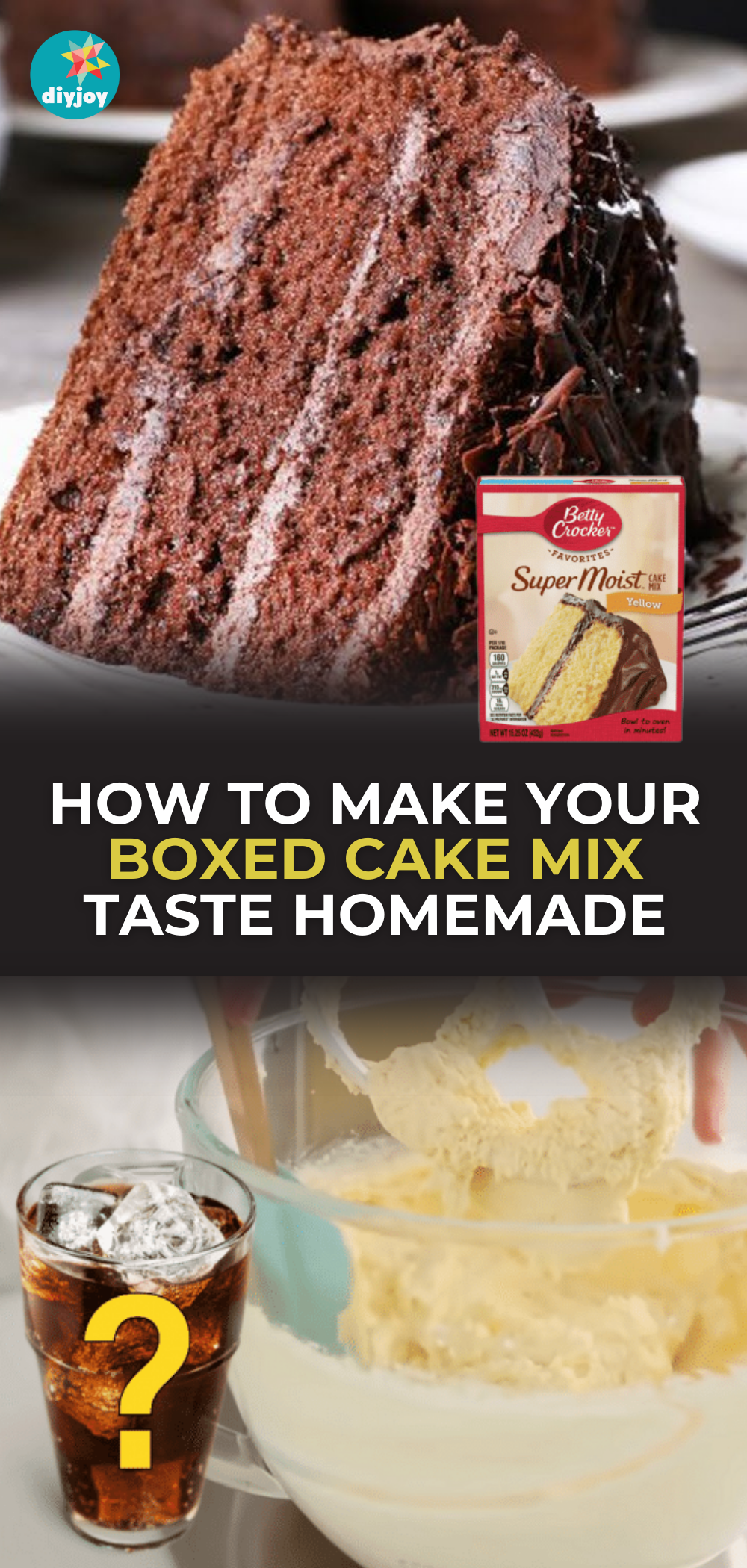 Consider using orange juice for yellow cake mix or apple juice in a spice cake. You can also sub the liquids with coconut milk or chocolate milk.
