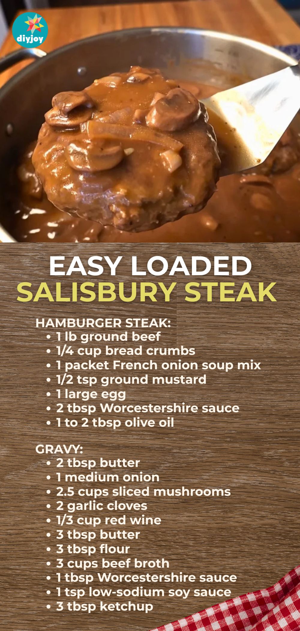 This loaded Salisbury steak recipe by The Sauce and Gravy Channel is absolutely delicious! The patties are moist, tender, and flavorful – perfectly paired with the homemade mushroom and onion gravy sauce. Serve it with mashed potatoes, rice, or pasta for a complete meal.