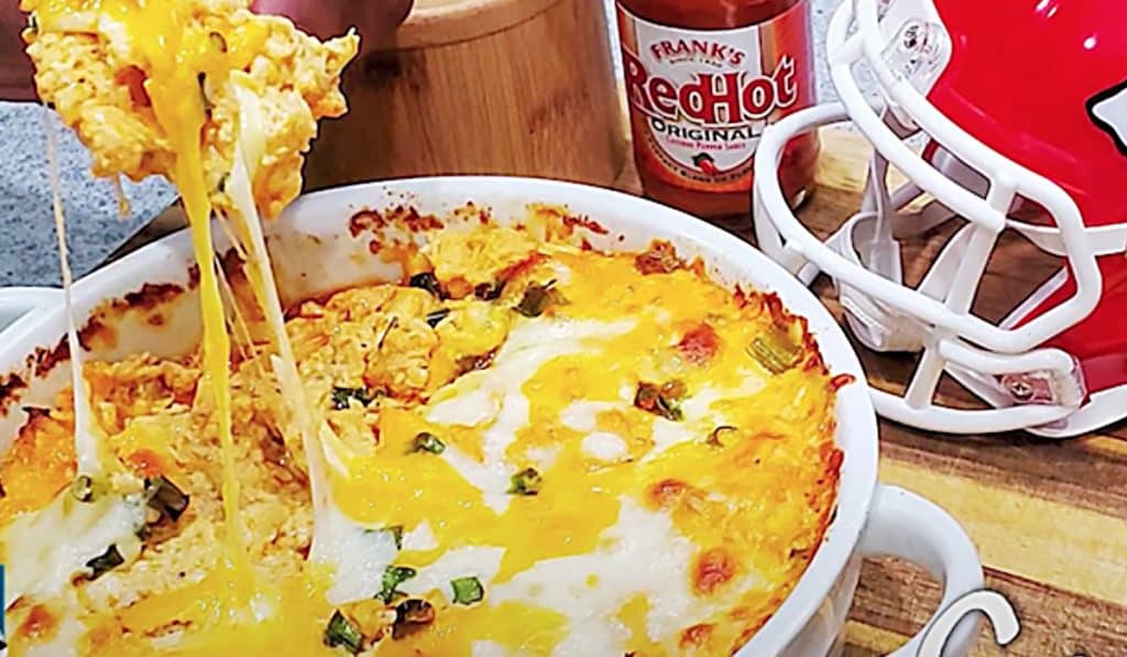 New Yer’s Eve is almost upon us, so when I found this awesome buffalo chicken dip recipe by Smokin’ & Grillin’ Wit AB, on YouTube, I knew this was going to be a perfect appetizer idea for my New Year’s Eve party. This hearty dip is filling enough to double as a meal idea and can be served with chips, cut vegetables, French fries, or even potato skins. This deliciously creamy cheesy chicken dip can even be eaten in a bowl because it really tastes like a juicy casserole. However you choose to serve this excellent dip recipe, it will be very well received by your guests. The other great thing about this recipe is the fact that it will give your guests a full stomach so the chances of drinking too much will be greatly reduced. All and all this is a great party idea and will taste delicious for a family dinner idea as well.