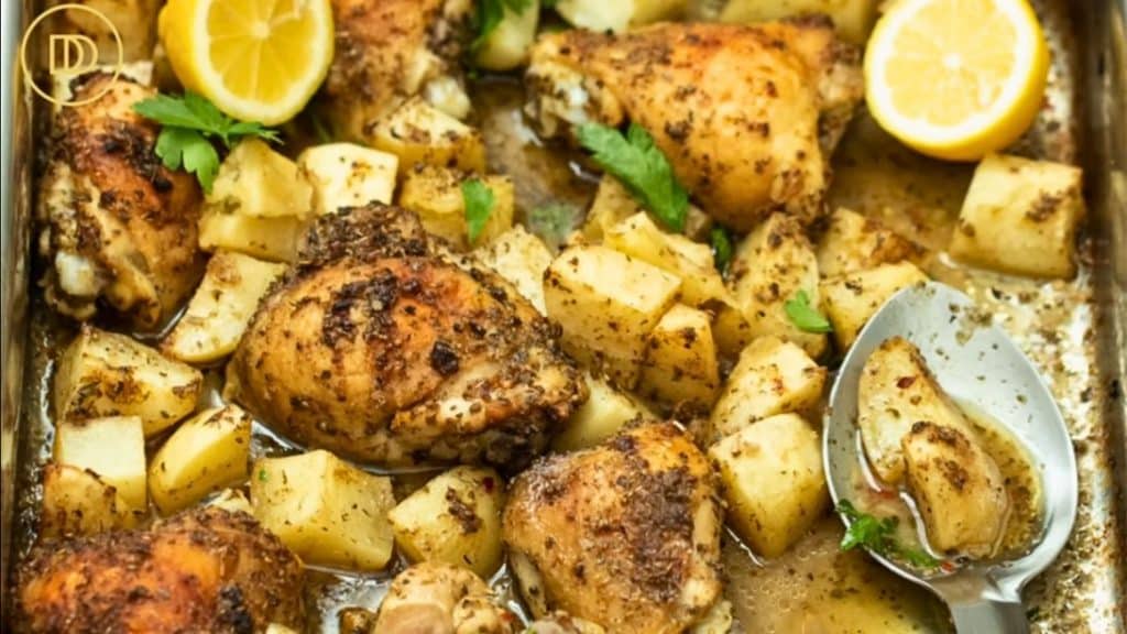 The chicken and potatoes are perfectly cooked and seasoned. You can definitely taste the herbs, garlic, and lemon in each bite. The best thing about this recipe is that you don’t need to marinate the chicken, but if you want to, you can marinate it for a day. Just make sure not to add the potatoes as they will turn brown. This will allow the chicken to absorb all the delicious flavors and make it more delicious.