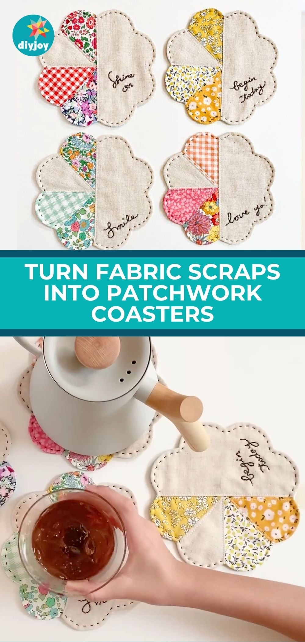 In this awesome patchwork flower coaster video quilting tutorial by Minki Kim, on YouTube, you will learn to make these gorgeous coasters in a few easy steps. You will begin by drawing the basic flower pattern, then using it to cut out the shapes in the fabric.