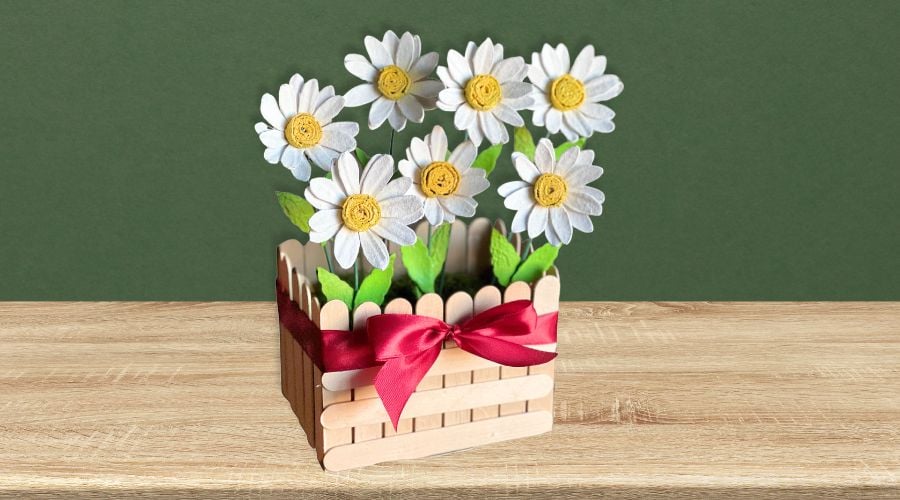 - Petals: Cut 2 egg cups. Snip 8 petals into each, round the tips, and paint white. Nature isn’t perfect, so don’t stress symmetry!